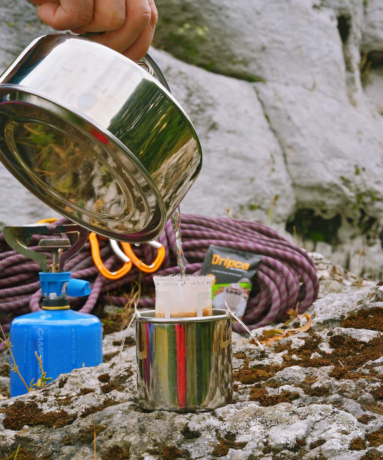 - Łatwo ją zaparzyć. Potrzebujesz tylko naczynia i wrzątku! Otwórz saszetkę kawy Dripca, przelej ją wodą, wyjmuj saszetkę i ciesz się smakiem wspaniałej kawy na polanie, wysoko w górach, podczas pieszych wędrówek czy pracy na działce.