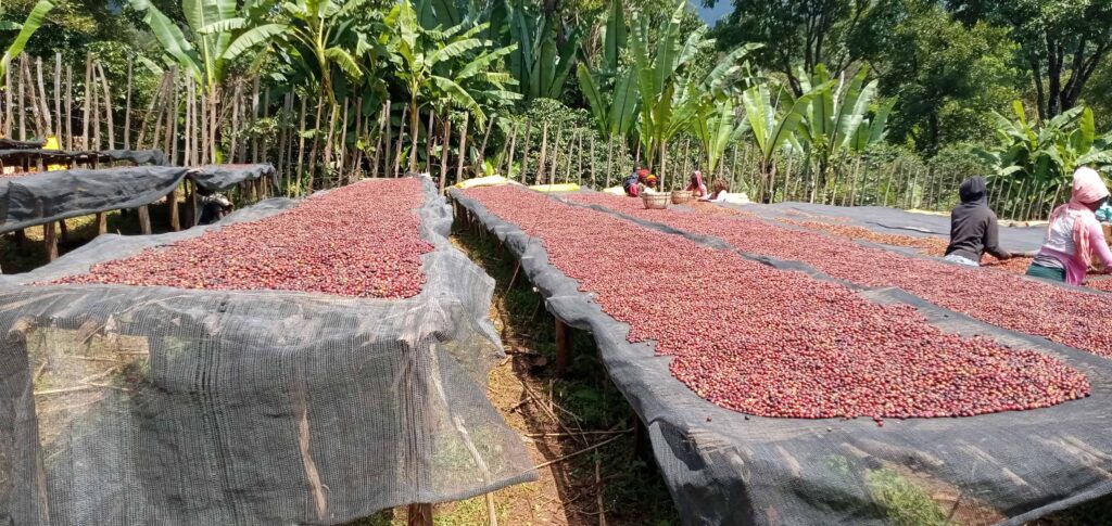 Za kawą Etiopia Balese Dinigu stoi wielopokoleniowa rodzina rolników, dla których uprawa kawy to nie zawód, lecz sposób życia. Gospodarstwo obejmuje ponad 12 hektarów ziemi, na której pracuje cała 12-osobowa rodzina oraz 50–60 pracowników sezonowych podczas zbiorów. Balese Dinigu łączy tradycję Gedeo z nowoczesnym podejściem do jakości, współpracując bezpośrednio z importerem Trabocca. Od 2018 roku rodzina posiada własną licencję eksportową, co oznacza pełną transparentność i sprawiedliwsze wynagrodzenie — czyli prawdziwy bezpośredni handel. Wybierając tę kawę, wspierasz realnych ludzi i ich społeczność.