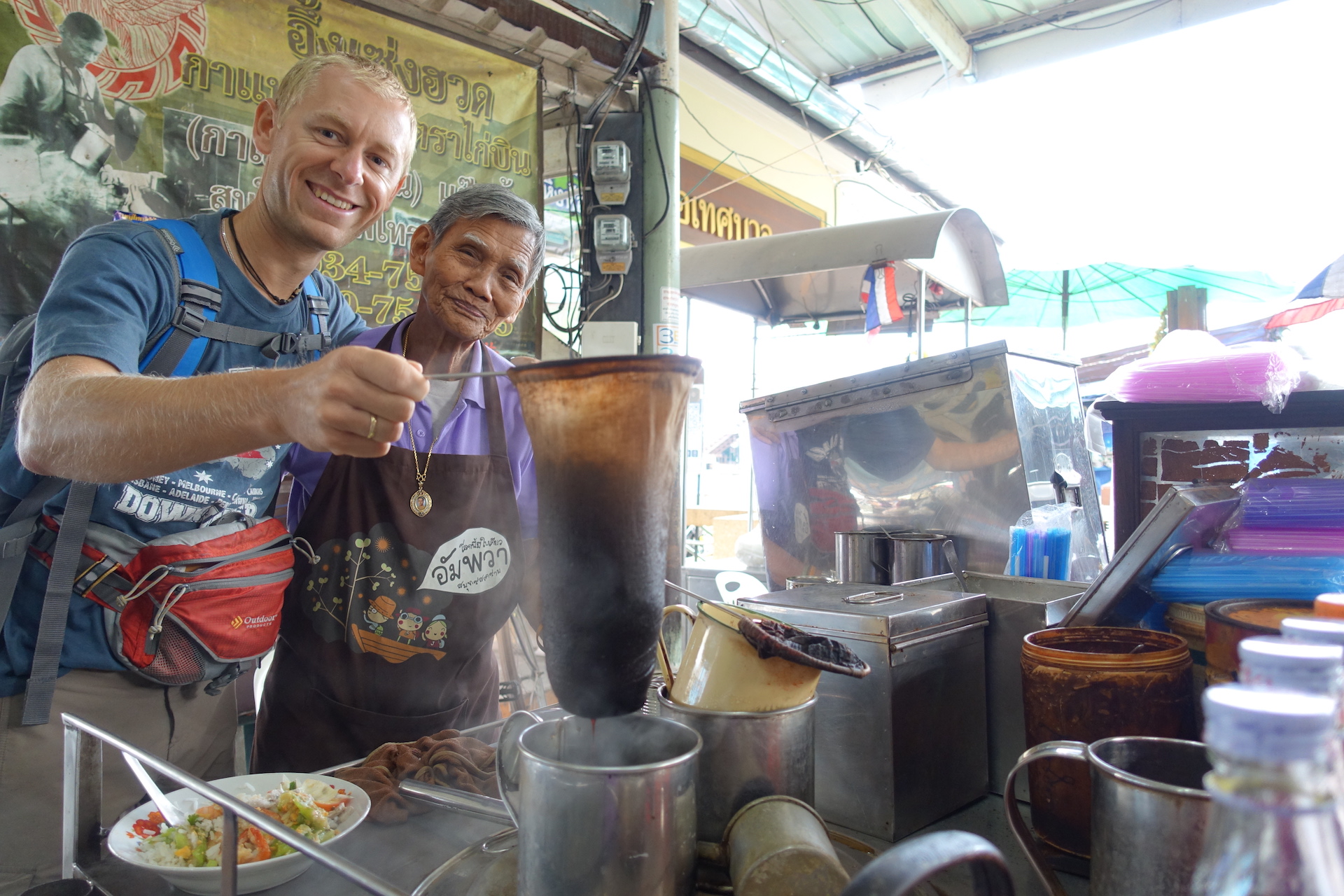 Podróżując staraliśmy się spotykać z ludźmi, dla których kawa zajmuje wyjątkowe miejsce w ich życiu. Taką osobą jest właśnie Pan Bunnareth, który od kilkudziesięciu lat, w tym samym miejscu na targu w stolicy Kambodży serwuje niespotykanie dobrą kawę mrożoną.
